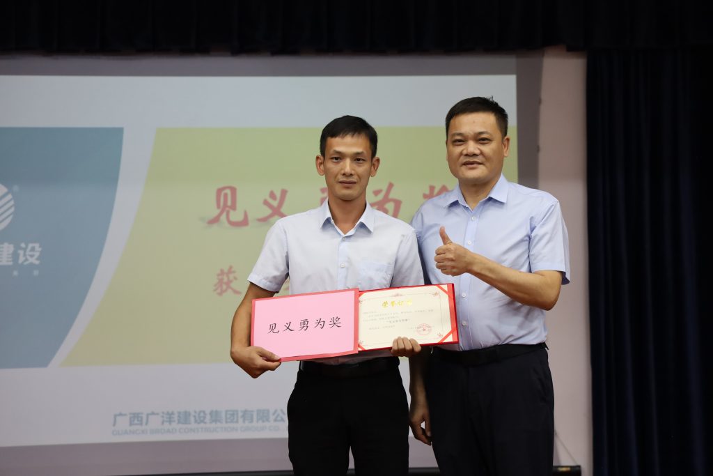 此外,公司还隆重颁发了一个奖项:“见义勇为”奖。言善非难,行善为难,物业部唐炳飞勇救跳水者,荣获当之无愧的“见义勇为”奖。善意会点燃希望的火苗,宇宙浩瀚,自然可畏,生命可敬!我们永远需要像唐炳飞这样挺身而出的平凡英雄。他的英勇救人,彰显了高尚的品德,弘扬了中华民族的优良传统,积极践行了积善行、思利他的广洋企业文化,为他点赞!